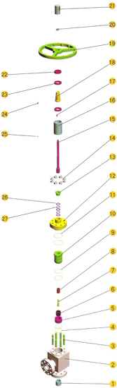 The choke valve, a main component of Christmas tree, is design to control production rate of the oil well,with working pressure up to 10000psi. Choke valves can be classified as follows: adjustable choke valves and positive choke valves. By rotating handwheel to drive the stem, and the adjustable choke valve is designed to adjust the effective area available for the flow to accomplish control of production rate. The positive choke valve is design to accomplish control of production rate by changing flow beans. Features 1、The coupling nut used for connecting the bonnet and body allows fast make-up and break-out. 2、Stem tip and bean adaptor are fabricated from special carbide alloys for corrosion and abrasion resistance. 3、Indicator lens with scale marks allows the operator to km=now stem's position and actual orifice area. 4、Turn handwheel counter-clockwise and the valve will open; turn handwheel clockwise and the valve will close.