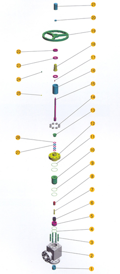 節(jié)流閥作為采油樹和管匯的主要部件,主要用于控制油井井口產(chǎn)量,其工作壓力級別可達(dá)10000psi。節(jié)流閥分可調(diào)式節(jié)流閥和固定式節(jié)流閥兩種類型。可調(diào)式節(jié)流閥通過轉(zhuǎn)動手輪帶動閥桿進(jìn)退來調(diào)節(jié)節(jié)油嘴開度面積的大小,達(dá)到控制、調(diào)節(jié)產(chǎn)量的目的。固定式節(jié)流閥則通過更換油嘴尺寸來達(dá)到控制、調(diào)節(jié)產(chǎn)量的目的。 節(jié)流閥有如下特點(diǎn): ◎固定式節(jié)流閥閥蓋與閥體采用油壬連接,裝拆迅速方便; ◎閥桿頂針和油嘴內(nèi)套采用特種硬質(zhì)合金制造,耐腐蝕、耐沖刷; ◎可調(diào)式節(jié)流閥的閥蓋上裝配有機(jī)玻璃防護(hù)的開度指示牌,能觀察到閥桿在任意位置時節(jié)流孔道的實(shí)際面積; ◎手輪逆時針旋轉(zhuǎn)為開,順時針旋轉(zhuǎn)為關(guān)。