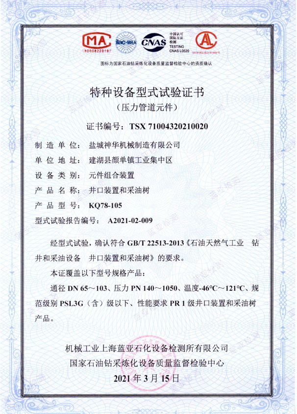 特種設備型式試驗證書
